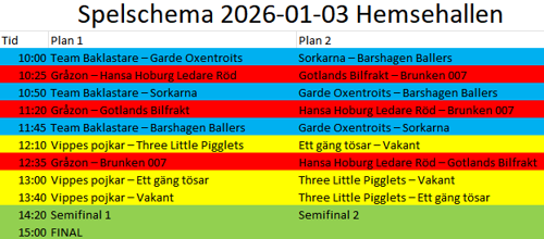 - Speltid: 2x10 min, sista minuten i andra perioden är effektiv
