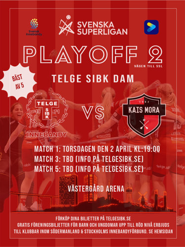 Nu på torsdag 2/4 kl. 19:00 drar playoff 2 igång för Telge SIBKs damer.
