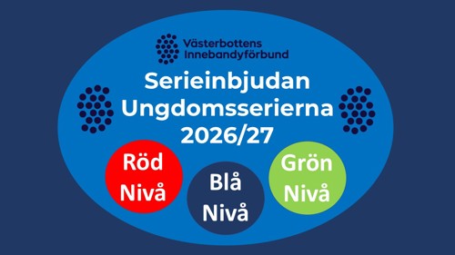 Nu är det dags att anmäla sig till Ungdomsserierna i innebandy säsongen 2026/27. Senast 4 maj 2026 ska anmälningarna vara inlämnade för lag som nästa säsong ska spela på Röd och Blå nivå. Preliminära åldrar för dessa nivåer är pojkar och flickor födda 2011 - 2017.
