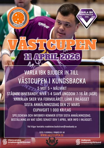 Här kommer inbjudan till Västcupen by Klubbhuset den 11 april 2026! Den här gången står Varla IBK som värd i Kungsbacka.