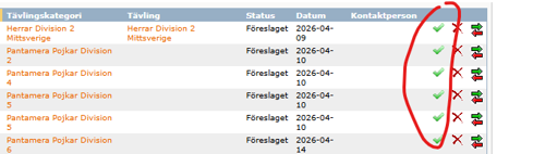 Sen klickar ni i den gröna bocken för det lag du ska anmäla