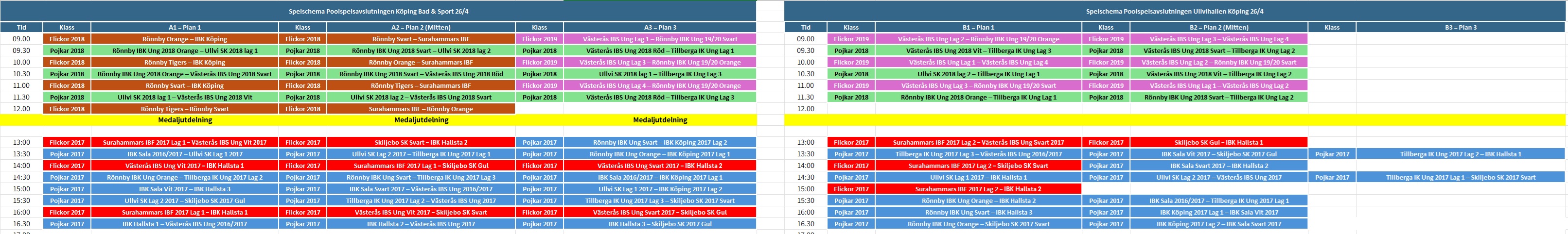 Nedan presenteras spelschemat för poolspelsfesten i Köping.