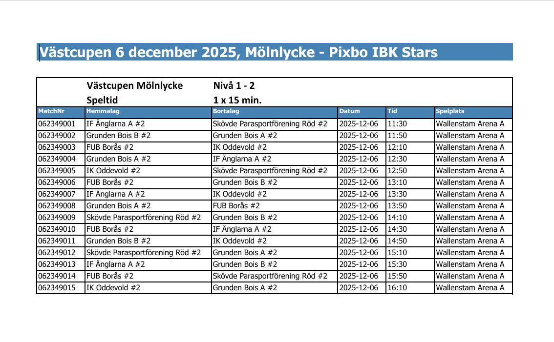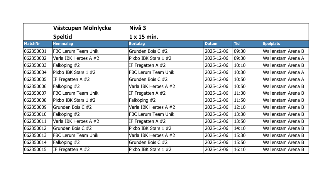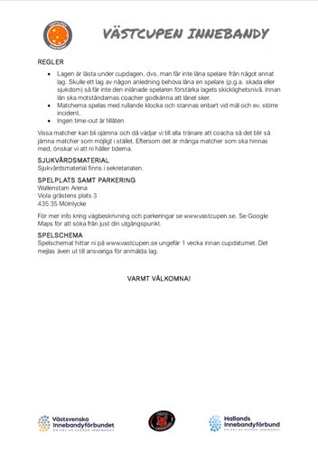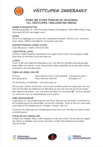 Cupavgiften på 1 000 kr/lag betalas till Pixbo Innebandys bankgironr. 5063-6885. Ange Västcupen