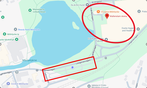 Nedan ser ni var arenan ligger och även var ni lämpligen kan parkera (där det också är avgiftsfritt).