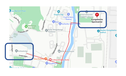 Hallarna ligger relativt nära varandra, det tar ca 13 minuter att gå och ca 5 minuter att åka bil mellan dem.