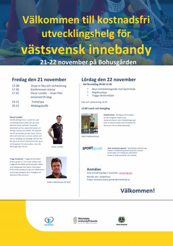 Varmt välkomna till Bohusgården och vår årliga utvecklingshelg den 21 - 22 november. Likt tidigare år blir det föreläsning på fredagen och i år är självaste Oscar Lundin med oss och berättar om sin resa från Jonsered ut i världen.